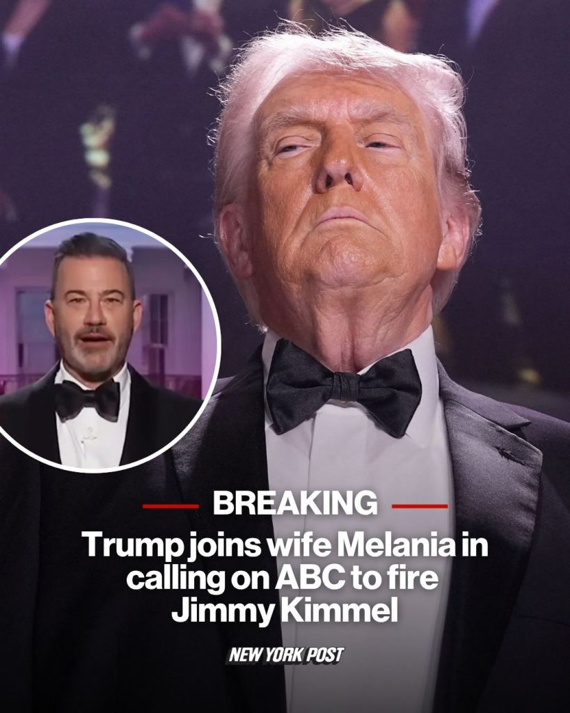 “Jimmy Kimmel should be immediately fired by Disney and ABC,” the president wrote in a post on Truth Social, echoing a call made by the first lady earlier in the day.