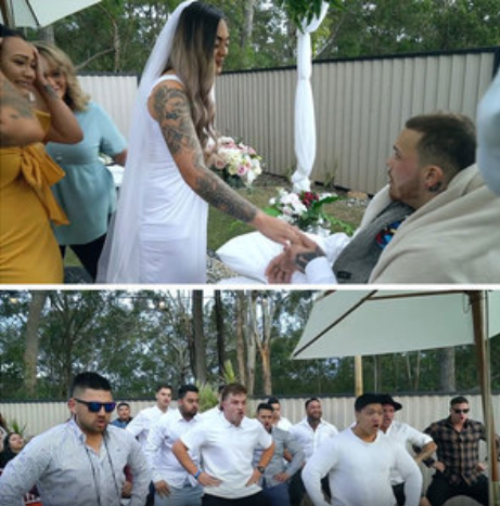 In the footage, Navar’s groomsmen are seen helping him get dressed for the big day before wheeling him outside to wait for his future wife to walk down the aisle.